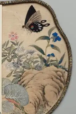 花卉蝴蝶湖石纹异形团扇