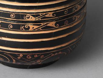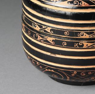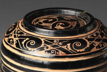 汉代漆奁凤鸟纹多为曲线表现,更具柔和美与动态美,且趋于符号化,大多仅保留鸟首的形态特征。东汉凤鸟几何纹漆盖盒上的凤鸟纹可能也具有这些特点,以纤细且流动连续的线条勾勒出凤鸟的形态,展现出凤鸟的灵动飘逸。凤鸟在古代中国是吉祥的象征,代表着美好、幸福、祥瑞等。东汉凤鸟几何纹漆盖盒上的凤鸟纹,寄托了当时人们对美好生活的向往和追求。