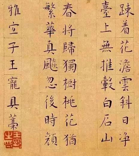 书法特点:王宠的小楷用笔圆润遒劲,笔画粗细均匀,起笔、收笔处含蓄蕴藉,没有过多的锋芒外露。结构上,字体宽绰疏朗,姿态优美,具有一种空灵、秀雅的气质。每个字的重心平稳,却又在笔画的长短、疏密变化中展现出灵动之感。墨色均匀,浓淡适宜,使得整幅作品看起来和谐统一。纸张因年代久远,呈现出自然的泛黄色泽,可能存在一些轻微的褶皱、磨损痕迹,但字迹依然清晰可辨,书法的神韵保存完好。作品末尾有王宠的落款 “雅宜子王宠具稿” ,并钤盖有印章,印章的存在为作品的真伪鉴定和流传脉络研究提供了重要依据。