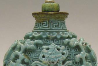 宫廷造办处的支撑:乾隆时期,宫廷造办处下设 “玉作”“牙作”“珐琅作” 等多个作坊,集中了全国最顶尖的工匠(如玉雕工匠、石雕工匠),专门为皇室制作各类器物。绿松石雕鼻烟壶便是 “玉作” 或 “石作” 的精品,其工艺标准由皇帝亲自审定,从原料筛选到纹饰设计均需 “符合圣意”,因此兼具 “工艺极致性” 与 “皇权审美性”。