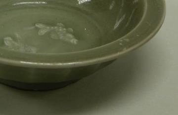 一般为敞口,宽平沿,弧腹,圈足。整体造型规整,线条流畅,给人一种端庄稳重之感。外壁多刻有凸菊瓣纹或莲瓣纹,瓣面较细,中脊挺拔,瓣面自中脊坡向两侧,莲瓣凸出部分略透黄白色,即所谓 “出筋”。洗心内塑贴或印贴两条游鱼,鱼纹清晰,摇鳍摆尾,栩栩如生,仿佛在水中嬉戏。