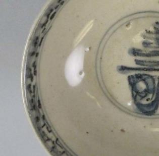 万历时期器物普遍追求 “体量感”,青花寿字碗亦不例外,常见尺寸为口径 15-20 厘米、高 7-10 厘米、底径 6-8 厘米,属于中等偏大的日用碗型,适合宴席或祭祀场景使用。整体造型为 “敞口、深腹、圈足”:敞口设计便于取食,深腹可容纳更多食物,圈足则为典型的 “直圈足”,足墙较矮且修胎略显粗糙