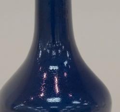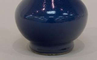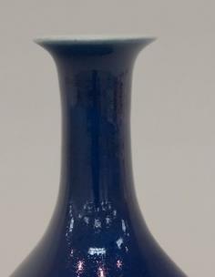 雍正皇帝仰慕古风,富于文人趣味,对宋器颇为钟情,以宋人审美为自身品味追求的典范。这一时期仿古颜色釉辈出,成就空前绝后,玉壶春瓶作为中国传统经典造型,在雍正朝有青花、粉彩、单色釉等多种品种,霁蓝釉玉壶春瓶即为其中的精品。