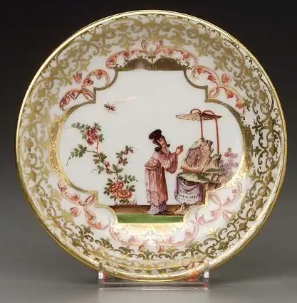 清代,中国瓷器在国际市场上极受欢迎,欧洲、美洲等地对中国瓷器需求旺盛。外国商人来华采购瓷器时,除了正常贸易外,部分人利用当时中国文物保护意识薄弱等情况,以贸易之名收购大量瓷器。这套粉彩描金人物纹杯碟很可能在这一时期,被外国商人购买后运至国外,最终流入波士顿美术馆。