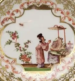 这一时期,中国瓷器大量出口,为了迎合国外市场需求,瓷器装饰题材丰富多样,除了传统的花鸟、山水外,还有不少描绘中国人物生活场景的图案,成为中西方文化交流的载体。外国对中国瓷器的大量需求,推动了清代外销瓷产业的繁荣,也促进了不同文化之间的相互了解。这套粉彩描金人物纹杯碟,就是清代外销瓷在满足国外审美需求过程中诞生的产物,对于研究清代中外贸易史、制瓷工艺以及文化交流具有一定的参考价值。