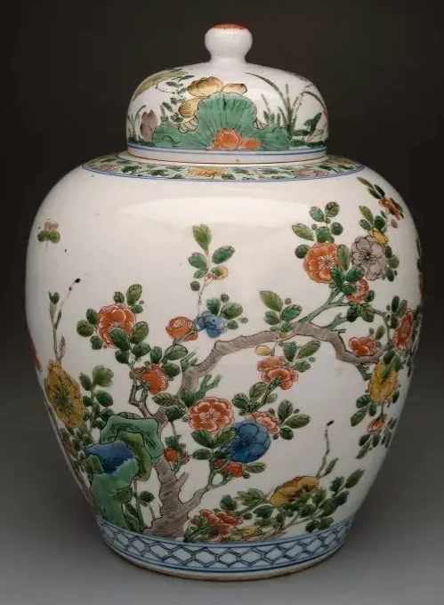 胎釉特征:胎体厚重且质地坚硬细密,能够很好地支撑起较大的器型。罐内外施白釉,釉面光洁莹润,微微泛青,为五彩纹饰提供了纯净且温润的底色,使得五彩颜色更加鲜明亮丽。