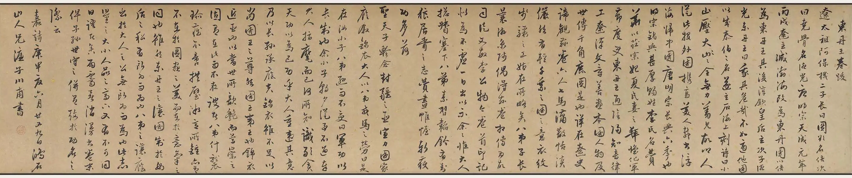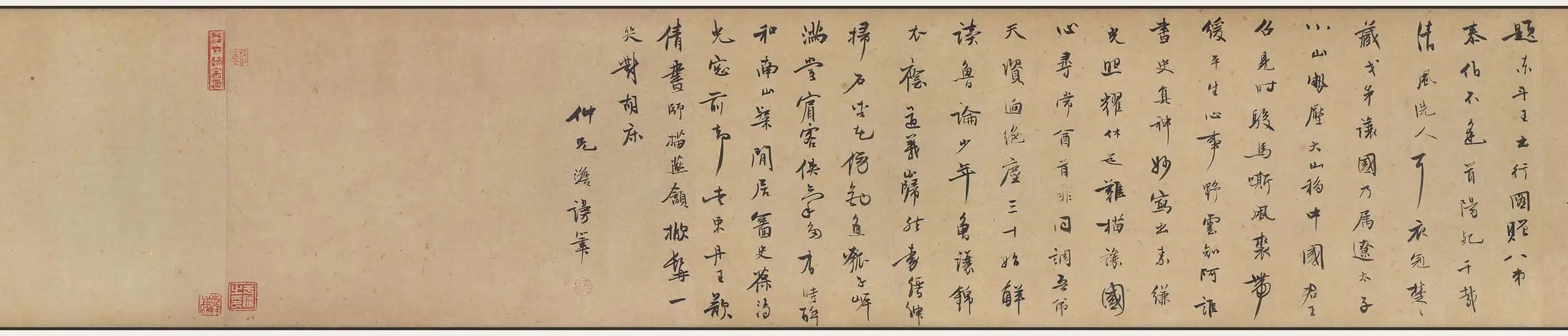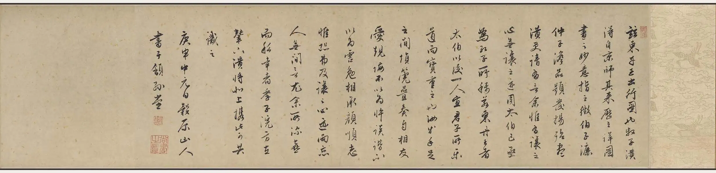 题跋与钤印:画卷上有后世收藏者和文人的题跋,这些题跋对画作的背景、作者以及艺术价值等方面进行了阐述和评价。此外,还钤有诸多收藏印鉴 ,反映了该画卷在历史上的流传轨迹。
