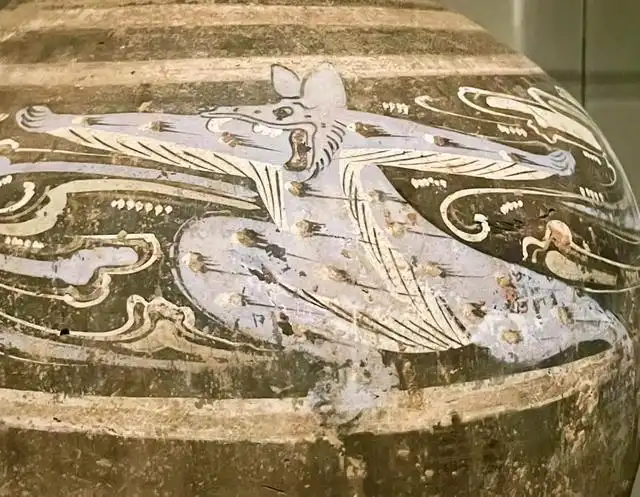 西汉时期,社会经济得到恢复和发展,手工业也达到了较高水平,制陶业是其中重要的组成部分。陶器不仅是日常生活中的实用器具,也是重要的随葬品。彩绘陶在西汉十分流行,常被用于墓葬,用以陪葬逝者,希望逝者在另一个世界也能享用。当时的人们受道家、儒家等思想影响,追求长生不老、天人合一,在陶器装饰上常出现神话瑞兽、云气纹等元素,寓意吉祥、驱邪避灾,反映了西汉时期的社会文化和人们的精神信仰 。