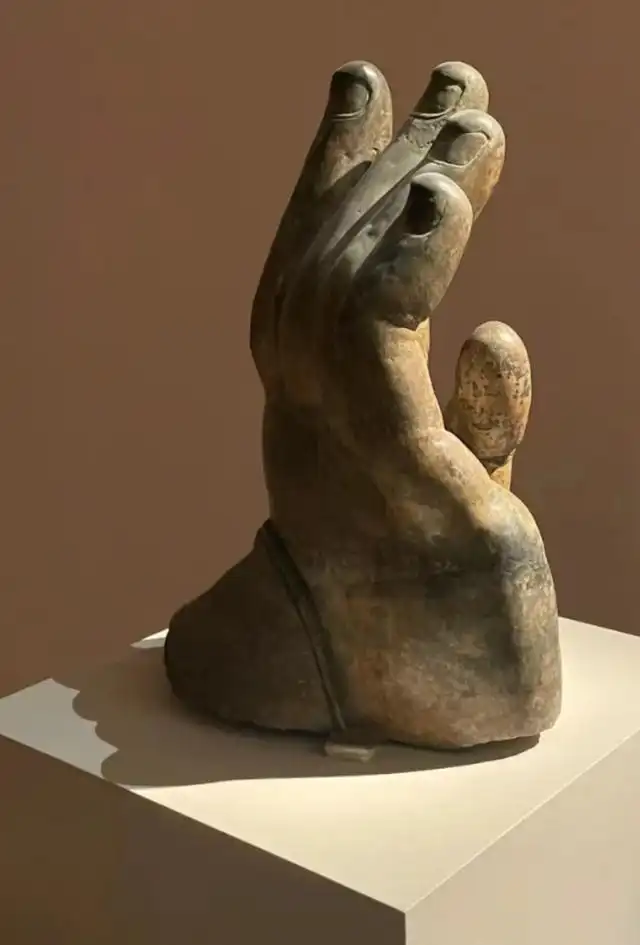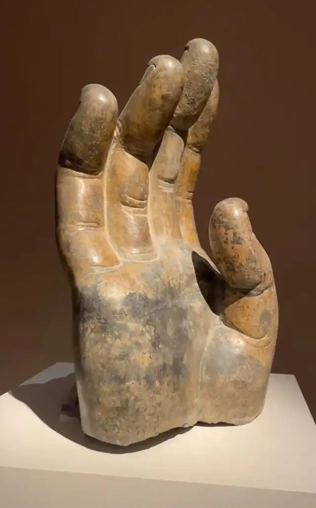 北齐时期,佛教盛行,统治者大力推崇佛教,视其为维护统治和安抚民心的重要工具。响堂山石窟便是在这一背景下大规模开凿的,它融合了中西方的艺术风格,是北齐佛教艺术的杰出代表。佛教造像在当时不仅是宗教信仰的象征,也是艺术创作的重要载体。工匠们在雕刻佛像、佛具时, 倾注了大量的心血,力求展现出佛教的神圣与庄严。佛手作为佛像的重要组成部分,不同的手势(即手印)有着特定的宗教寓意, 常用于传达佛法教义和祝福,反映了当时人们对佛教的虔诚以及佛教艺术在社会生活中的重要地位。