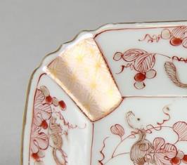 整体呈方形,边角多为 “倭角”(即边角经打磨呈柔和弧形,避免尖锐),盘身浅腹,盘底为圈足或平底(早期康熙朝可能见砂底,后期多施釉)。方盘尺寸常见 15-25 厘米见方,大小适中,既适合陈设观赏,也可作实用的茶盘、果盘。方形器相较于圆形器烧制难度更高,需精准控制胎体收缩,避免变形,体现了清代制瓷工匠对器型把控的成熟度。