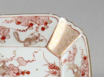 矾红描金葡萄纹方盘