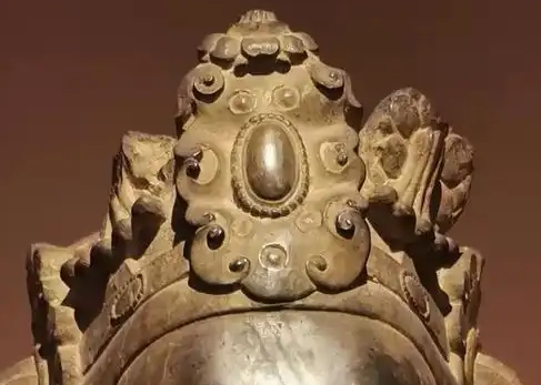 整体造型:菩萨头像比例协调,姿态端庄。头戴极为精美的冠饰,整体造型华丽,彰显出菩萨的神圣与尊贵身份。