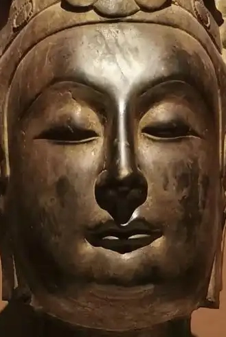 北齐响堂山石窟彩绘石雕菩萨头像2(石灰岩)