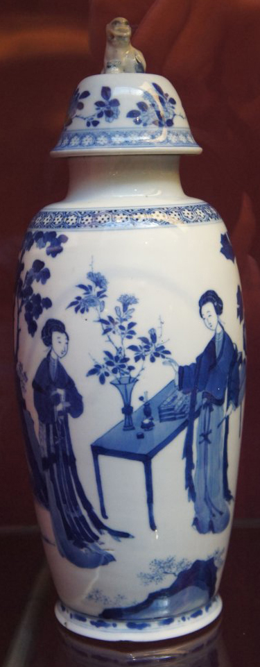 晚清至民国年间,中国内忧外患,社会秩序混乱。外国文物贩子与国内不法古董商相互勾结,大肆收购中国文物。这件青花仕女纹带盖瓶可能原属民间收藏、古董店铺,或是私人收藏机构 ,在这一时期被非法收购,通过文物交易渠道运往英国,最终被苏格兰国家博物馆收藏。