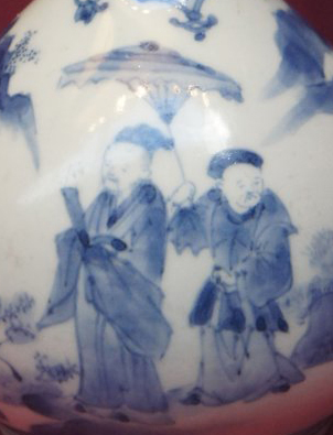 明清时期青花人物纹蒜头瓶