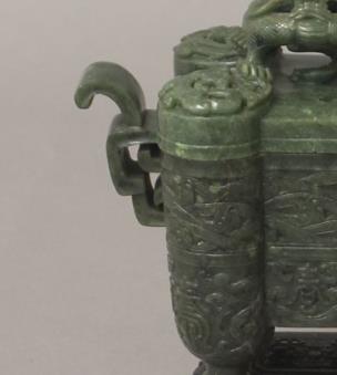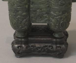 乾隆皇帝重视新疆的管辖,通过平定准噶尔叛乱、加强对和田地区的控制,确保了和田玉料的稳定供应;同时,宫廷还通过 “朝贡”“采买” 获取俄罗斯、中亚等地的优质碧玉,解决了 “原料短缺” 问题,为大型玉雕器物(如四联瓶)的制作奠定基础;此类四联瓶并非实用器(因 “四联” 结构,无法单独盛装液体),而是纯粹的 “宫廷陈设器”,主要摆放于养心殿、宁寿宫、御花园等皇帝日常活动场所,或作为 “赏赐品”(赏赐给王公贵族、外国使节),彰显皇家威严与财富。