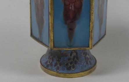 景泰蓝葡萄纹六方花瓶