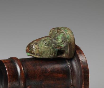 套在马车车轴两端的管状部件,是最可能出现羊首造型的载体。整体呈 “管状主体 + 羊首顶端” 结构 —— 管状部分长 15-25 厘米(因马车规格而异),内壁有细棱纹(增强与车轴的咬合度);顶端铸造成立体羊首,羊首高 8-12 厘米,与管状主体一体浇筑,羊首朝向车轴外侧,既避免行车时与其他部件碰撞,又能通过兽首造型强化视觉冲击。
