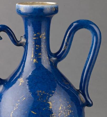 洒蓝釉工艺在宣德之后曾停烧,直到清代康熙年间,随着社会经济的恢复和发展,瓷器烧制技术不断进步,洒蓝釉才又恢复生产。康熙、雍正、乾隆时期的洒蓝釉瓷器呈色稳定,做工精细,很多辅以金彩装饰,反映了当时高超的制瓷工艺水平和宫廷对瓷器的审美追求。