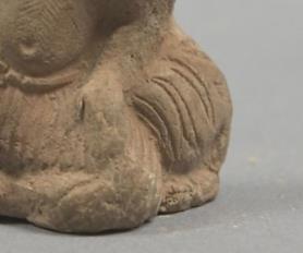 多采用当地黏土为原料,部分掺入细砂以增强韧性,烧制温度较低(约 800-1000℃),胎色以红褐、灰褐为主,胎质细密但密度较低,手感略轻,符合宋代民间陶模 “低成本、易制作、便传播” 的实用属性面部线条简洁,额间多有 “白毫相”(佛教造像中罗汉的标志性特征),眉眼低垂或微睁,神态慈祥而坚定,胡须以短线条刻画,部分罗汉身着 “右袒式僧衣”,衣纹以 “平行阴线” 或 “折线” 表现,简洁有力,符合宋代艺术 “尚简” 的审美取向。