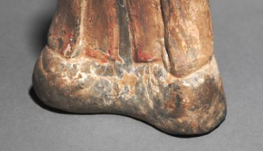 本品规格为22.6厘米。头部为狗首,双耳竖起,透着机敏,双眼圆睁,炯炯有神,似乎在警惕地观察周围 ,嘴巴微微张开,展现出狗忠诚且警觉的神态。尽管历经岁月侵蚀,狗首的特征依然清晰可辨,生动地还原了狗的形象特点。以陶土烧制而成,岁月在其表面留下斑驳痕迹,呈现出古朴的色调,主要为灰黑色,并夹杂着棕褐色的锈迹与风化痕迹 ,尽显历史的沧桑厚重感。