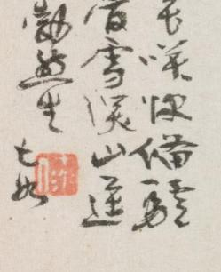 本品规格为6.1 x 7.7 厘米。右侧以简笔绘一高士骑驴, 斗笠遮头, 衣袍宽松, 驴蹄轻迈, 线条率性写意, 以淡墨为主, 寥寥数笔勾勒出 “驴背行吟” 的悠然场景。 人物神态隐于斗笠下, 却传递出闲适、 超脱的气质。左侧行书题诗, 文字与画面意境相契, 或咏 “骑驴探梅”“风雪途趣” , 诗画互释, 强化 “高士隐逸、 寄情山水” 的文人雅趣, 展现曾衍东 “诗画一体、 以笔写心” 的创作风格。