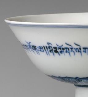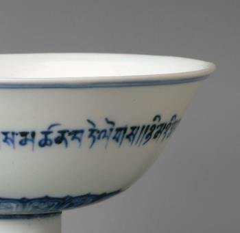 青花藏文高足碗