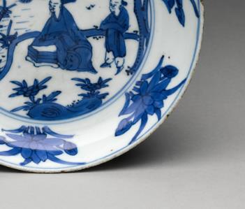 明万历青花周敦颐爱莲图盘的出现,与当时的社会文化背景密切相关。明代道教盛行,嘉靖和万历时期更是道教发展的繁盛时期,莲花在佛教中有 “净土” 之意,寓意纯洁、吉祥,同时也符合儒家所倡导的君子品德,这种融合了宗教与文化内涵的纹饰,深受统治阶级和文人阶层的喜爱,因此在瓷器上得以广泛应用。