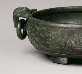 器身:整体呈敞口、浅腹、圈足的经典洗形 —— 口沿微外撇,边缘打磨光滑圆润(无锋利感,体现 “治玉如治丝” 的精细);腹部略鼓,线条流畅柔和,从口沿到腹底过渡自然,无生硬转折;圈足为矮圈足,足底平整,打磨精细,底部可能刻有隐晦的 “乾隆年制” 款识(部分乾隆宫廷玉器款识浅细,需近距离观察或借助工具识别,也有少量 “无款” 宫廷用器,以工艺与材质定年代)。