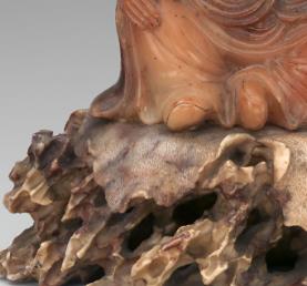多采用寿山芙蓉石雕刻而成,芙蓉石质地温润细腻,色泽鲜艳丰富,按色泽与质地可分为白芙蓉石、黄芙蓉石、五彩芙蓉石等多种类型,其中白芙蓉石极细润而雅净,上品白芙蓉石微透明而似玉非玉,凝结脂润、细腻纯净。