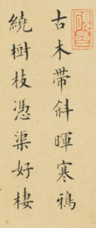 本品规格为12.6 x 17.3 厘米。右侧以古朴笔墨绘古木寒鸦, 枯树虬枝盘曲, 寒鸦或栖或飞, 背景淡染远山平湖, 营造出 “古木萧疏、 寒鸦灵动” 的氛围, 展现樊圻对自然小景的细腻捕捉与意境营造功力。左侧行书题诗, 文字围绕 “古木寒鸦” 展开, 从 “慈心人闻” 等词句传递人文情思, 与画面意境相呼应, 诗画一体, 强化了 “古雅中见生机、 清冷中含温情” 的文化内涵, 诠释清代文人 “以画寄情、 以诗表意” 的审美传统。