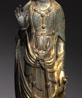 在辽代,佛教极为兴盛,寺庙遍布各地。这尊鎏金观音立像会被供奉在寺庙的佛殿中,作为观音菩萨的象征, 接受僧人和信众的朝拜。观音菩萨在佛教中以慈悲救苦著称,信徒们通过对观音立像的敬拜、祈祷,期望能获得观音菩萨的庇佑, 解决生活中的苦难,如疾病、灾祸等,获得心灵的慰藉和精神的寄托。