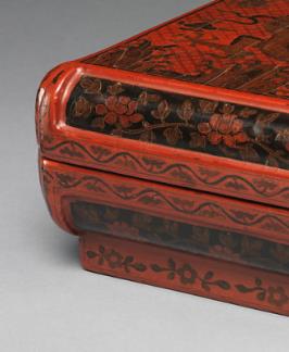通常为木胎,多呈倭角(委角)方形,即直角变为内凹的双弧线或圆角,有平顶弧沿、直壁,子母口设计,部分配有圈足,造型规整且端庄大方。如青岛市博物馆藏明万历戗金彩漆双龙戏珠纹倭角方盒,口径 18×18 厘米、高 9 厘米。