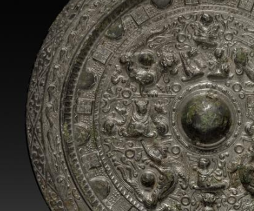 本品直径为18.5厘米。圆形,中央设半球形钮(用于穿绳持握 ),以青铜铸造,历经岁月氧化,表面呈现古朴绿锈与包浆,尽显历史厚重感。中心钮区:钮座简洁,围绕钮部是神兽、瑞兽主题纹饰,能辨识龙、虎等神兽,形态或奔走、或盘踞,细节刻画生动(如鳞片、肢体肌肉 );还穿插羽人、小兽等,营造 “神兽世界” 氛围。外围辅助纹:设几何纹、云气纹等装饰带,与主纹呼应,丰富视觉层次,体现南北朝铜镜 “满而不乱” 的纹饰设计逻辑。