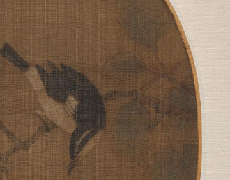 南宋绢本双禽栖枝团扇图