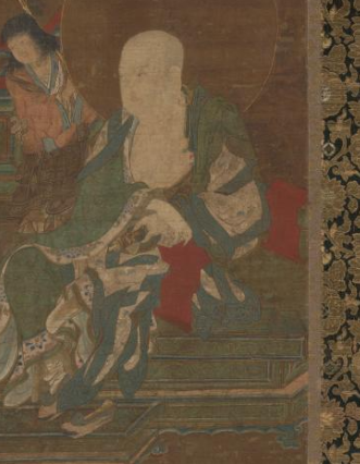 本品规格为201 x 75.5 厘米。画家对人物身形、服饰线条的勾勒细腻流畅,通过疏密有致的线条表现出衣物的褶皱和质感, 体现出南宋人物画注重写实的风格。例如,人物衣物的飘带、袖口等细节处,线条灵动,富有韵律感。采用了主次分明的构图方式,将端坐的主要人物置于画面中心或显眼位置,突出其重要地位, 周围的仕女作为陪衬,合理分布在周围,使画面既平衡又具有故事性,引导观者视线集中于主要人物,同时也能关注到人物之间的互动关系。
