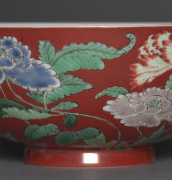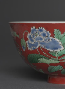 清代红地五彩花卉纹瓷碗