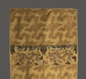 在清代,佛教尤其是藏传佛教备受尊崇, 龙纹织金锦幡常被用于佛教寺庙的各类法事活动,如诵经、祈福、开光等仪式。这类锦幡悬挂于寺庙殿堂之中,一方面增添庄重肃穆的氛围,烘托宗教的神圣感;另一方面,龙在中国传统文化中是祥瑞、权威的象征,锦幡上的龙纹寓意着佛法的威严与神圣不可侵犯,能够护佑佛法、庇佑众生。
