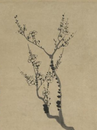 清代墨笔梅花题诗图轴
