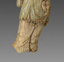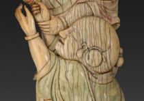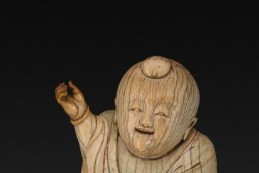 本品规格为23.5 厘米。呈现母子互动场景,孩童趴于大人背上,姿态亲昵。人物体态自然,大人衣袂、孩童身形均经细致雕刻,线条流畅,生动展现母子嬉戏的温馨瞬间,造型富有生活气息与艺术感染力。以象牙为材,雕刻细腻入微。衣纹褶皱、人物发式等细节清晰,运用染色等技法,为衣饰增添色彩层次,凸显材质质感与雕刻技艺精湛,体现清代牙雕工匠对人物形象的精准把握与高超工艺。