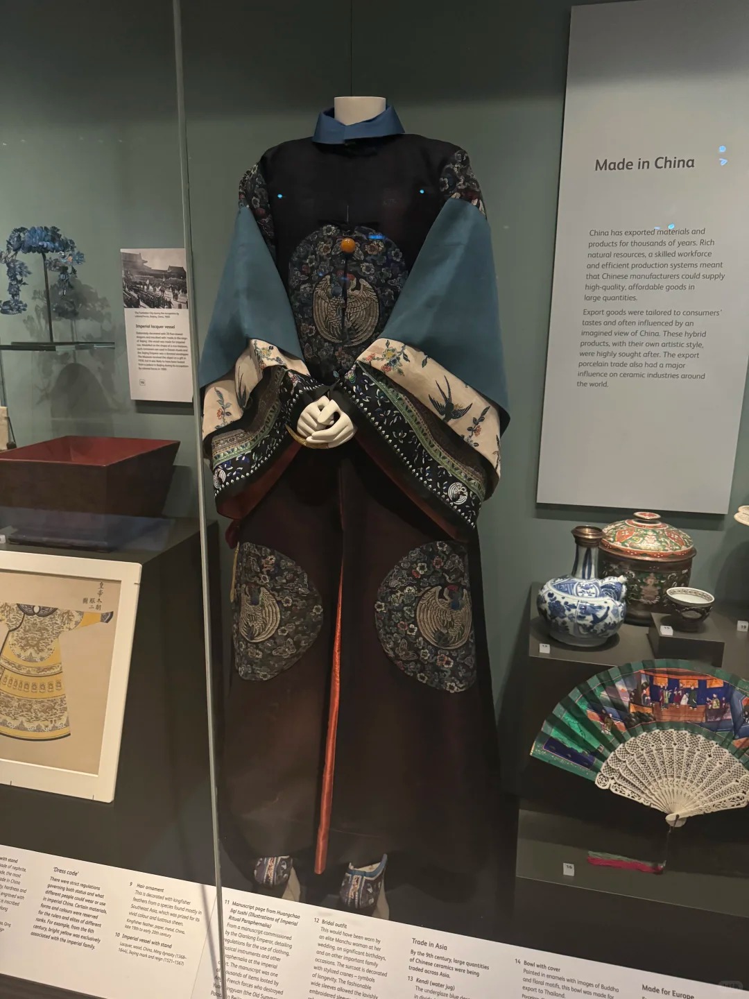 在近代列强发动的侵华战争(如第二次鸦片战争、八国联军侵华战争等)中,侵略者闯入中国宫廷、贵族府邸或相关场所,对包括这件精美服饰在内的大量文物进行掠夺,随后将其带至国外,最终流入英国苏格兰国家博物馆。