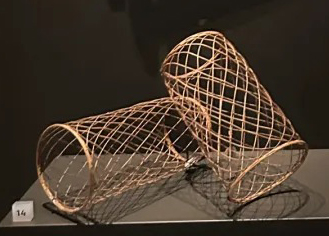 整体造型:由两个笼状结构组成,呈圆筒形,相互堆叠或倚靠摆放,造型简洁。编织结构形成镂空效果,具有一定的通透感。