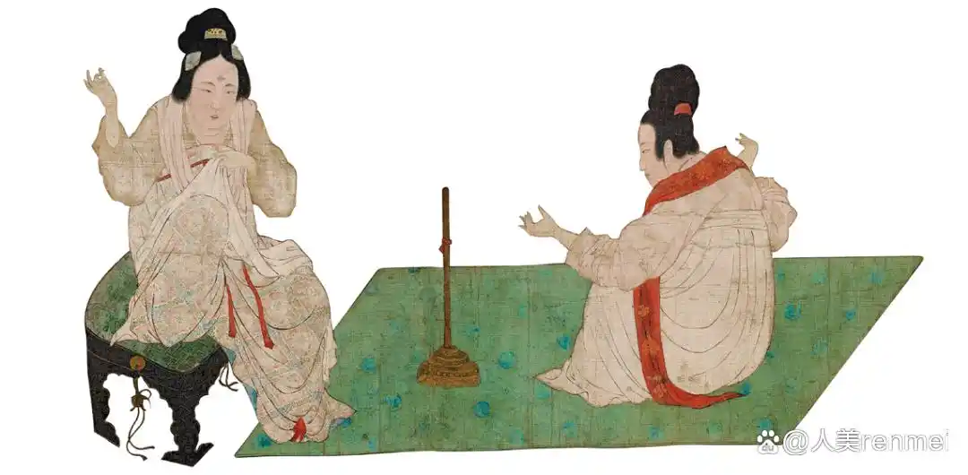 盛唐,上至宫廷下至民间都崇尚肥美。张萱笔下女性脸圆而饱满,体态丰腴健硕,尽显大唐女性的华贵之美。这些生活优渥的女性神态多惆怅与苦闷,慵懒之态尽显。