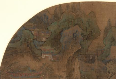 在北宋时期,团扇最基本的功能是纳凉。 这幅绘制了精美青绿山水楼阁的团扇,在炎炎夏日里, 使用者可以手持它扇风取凉,同时还能欣赏到扇面上的美妙画作, 兼具实用与审美功能 。