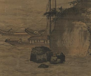 在明代,文人之间常举办雅集活动。这幅图轴会成为雅集上的鉴赏对象, 文人墨客们一同欣赏画作中描绘风雨的笔墨技法,如画家如何通过线条与墨色表现出风雨的动态、力度 ,以及对山水、舟船等景物的描绘方式,彼此交流艺术见解,从中获得审美享受与艺术启发。