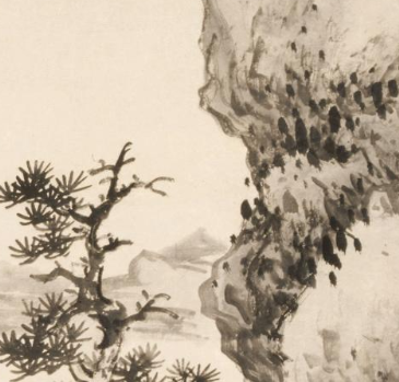 本品规格为141 x 56 厘米。以水墨绘就,展现出悠远空灵的山水意境。画面中,几株苍松虬曲多姿,扎根于山石之间,枝干挺拔,松针细密,尽显苍劲古朴之态,仿佛历经岁月沧桑。远处山峦连绵,以淡墨轻染,层次分明,营造出深远的空间感。山间云雾缭绕,若隐若现,为画面增添了朦胧缥缈的气韵。近景的山石用皴法细致刻画,纹理清晰,质感厚重。