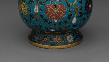 在明代宫廷中,这类精美的铜胎掐丝珐琅玉壶春瓶是重要的陈设品。它们会被放置在宫殿的殿堂、书房、寝室等场所,凭借绚丽的色彩和精致的工艺, 彰显宫廷的富贵奢华与皇家威严,体现皇家的审美与品位。
