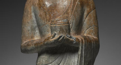 南北朝石雕持物弟子立像