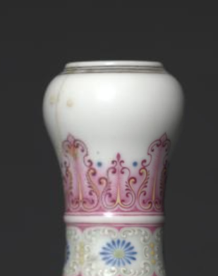 在清代,粉彩瓷器以其精美的工艺深受宫廷喜爱。这种蒜头瓶常被陈设于宫廷的宫殿、 居室之中,摆放在多宝格、条案等地方。瓶身精美的花鸟纹饰、柔和绚丽的色彩, 为庄重威严的宫廷环境增添了一抹灵动雅致的气息,彰显皇家的富贵与审美品味。