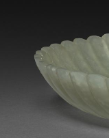 本品规格为直径11.1 厘米,高度2厘米。以青玉为材质雕琢而成。整体呈圆形,盘身造型优美,采用了菊瓣纹的设计,边缘一圈如菊花花瓣般层层舒展,线条流畅自然,富有韵律感,将菊花的形态生动地融入到器物造型之中,尽显雅致与灵动。青玉质地温润细腻,色泽淡雅清新,给人一种柔和静谧的美感。从工艺上看,盘身的菊瓣纹雕刻精细,每一片 “花瓣” 的轮廓都清晰分明,打磨光滑,体现出清代玉器制作工艺的精湛水准。它不仅是一件实用的器皿,更是清代玉器中兼具艺术价值与审美意趣的精品,反映出当时工匠的高超技艺以及对自然物象的艺术化呈现能力,对于研究清代玉器工艺和审美风尚具有重要意义。